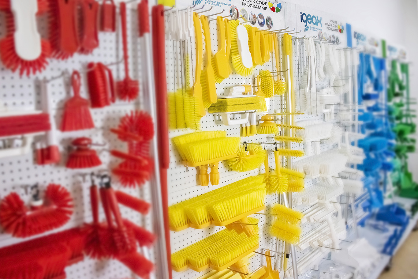 IGEAX offers high-quality, food-grade cleaning brushes and hygiene tools designed for food processing and other hygiene-critical environments. The range includes hand brushes, handle brushes, detail brushes, tube brushes, scrubbers, brooms, push brooms, squeegees, dustpans and detectable tools, all manufactured to meet strict food industry hygiene standards.